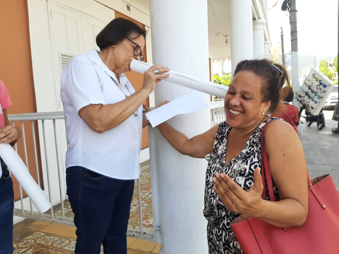 El espectáculo era inusual y maravilloso:  niños y niñas leyendo sus poemas a la gente en Puerto Plata por un tubo de papel, indica la profesora Banks, quien fuera directora del liceo José Dubeau hasta su jubilación y gestora literaria por el amor que tiene a los libros.