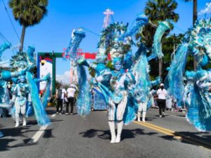 Entre los protagonistas destacaron los tradicionales Diablos Cojuelos que, con sus máscaras elaboradas, trajes vistosos y vejigas infladas, interactuaron con el público y elevaron el ambiente festivo que caracteriza esta celebración popular. Las agrupaciones participantes exhibieron coreografías y vestuarios que reflejan la diversidad cultural del país, mientras los ritmos de merengue, palos y otras expresiones musicales acompañaban el recorrido.