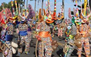 Este personaje representa la fusión de las tres raíces culturales que conforman la identidad dominicana: taína, africana y española. Sus máscaras de gran tamaño, colores intensos y trajes decorados con plumas, cintas y lentejuelas le han merecido un lugar especial en esta gran fiesta del pueblo.